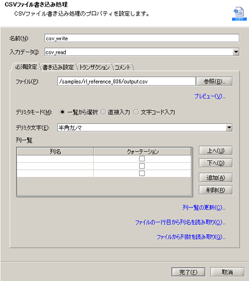 実行結果のイメージについては、サンプルプロジェクトのサンプルデータ「output.csv」を参照してください。