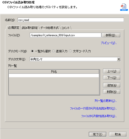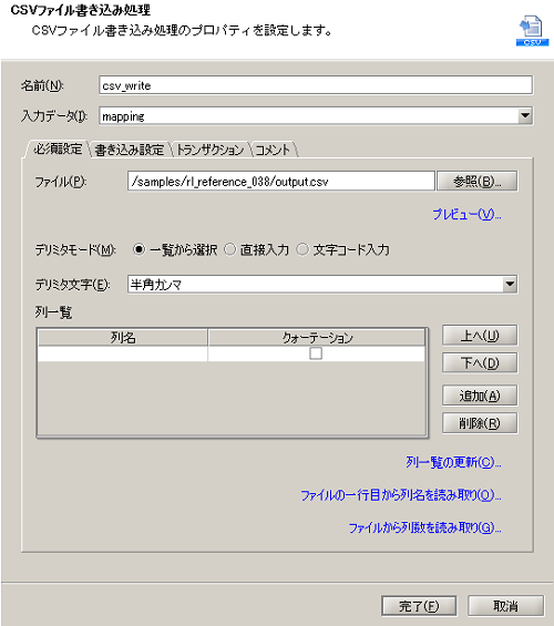 実行結果のイメージについては、サンプルプロジェクトのサンプルデータ「output.csv」を参照してください。