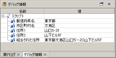 スクリプトを実行すると、スクリプト変数「結合された住所」に処理結果が代入されます。