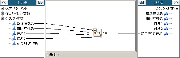 - 変数代入のMapperエディタに戻り、作成したユーザ定義ロジックを使用して変換した値を、スクリプト変数「結合された住所」に代入する処理を作成します。
