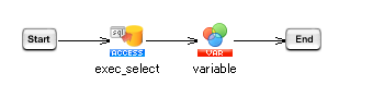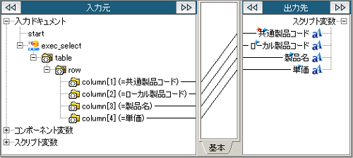 - 変数代入処理のMapperエディタを開き、データベースより取得したデータをスクリプト変数に格納する処理を作成します。
