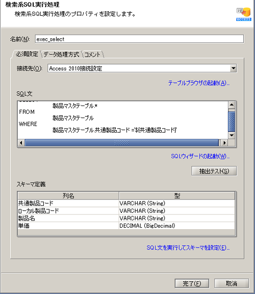 - 検索系SQL実行処理の設定は、以下のように行います。