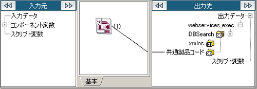 - 「共通製品コード」の値を引数とするため、Webサービス実行処理の入力スキーマにマッピングします。