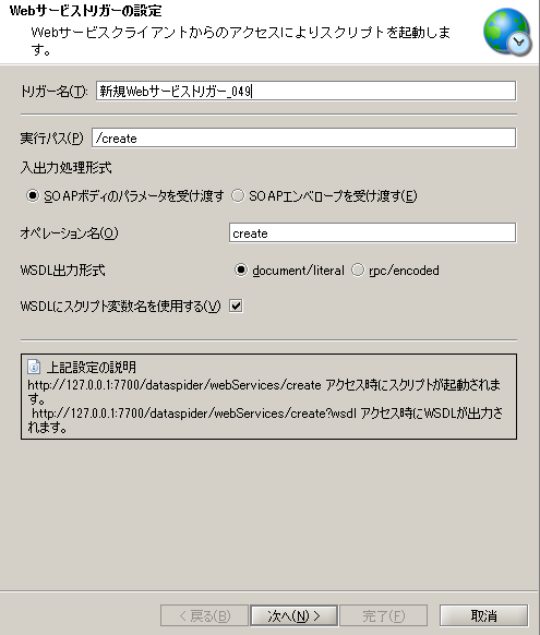 データベース更新処理をSOAPのWebサービスとして公開したい場合、Webサービストリガーを使用します。