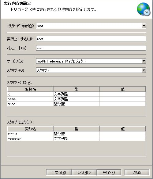 実行結果をSOAPクライアントへ返すため、エラーを監視し、スクリプト出力変数に実行結果となる値を設定します。