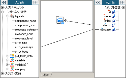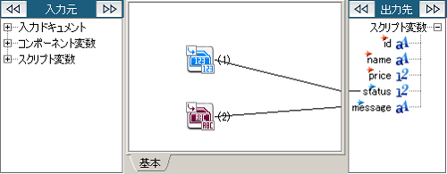 - デザイナのツールパレット「変換」-「基本」-「マッピング」から、マッピング処理をスクリプトキャンバスに配置します。