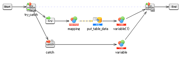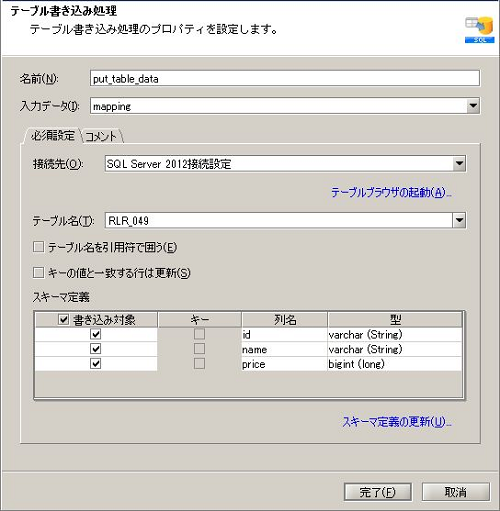 - 「テーブル書き込み処理」でSOAPクライアントから受け取った値をデータベースに書き込みます。