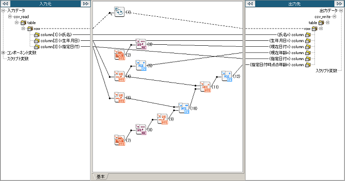 | (4) | 日時のパース | 入力文字列を指定フォーマットで日時にして出力します。 | 「日付」-「基本」-「日時のパース」 |