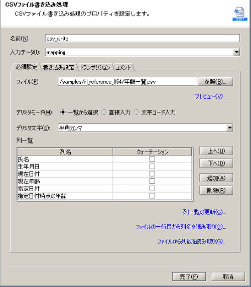 実行結果のイメージについては、サンプルプロジェクトのサンプルデータ「年齢一覧.csv」を参照してください。