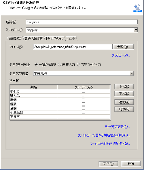 実行結果のイメージについては、サンプルプロジェクトのサンプルデータ「Output.csv」を参照してください。