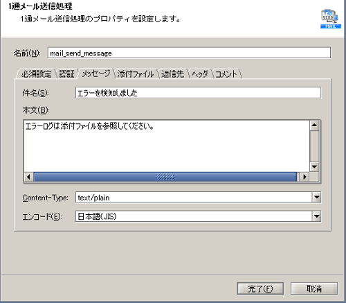 実行結果のイメージについては、以下を参照してください。| 件名 | エラーを検知しました |