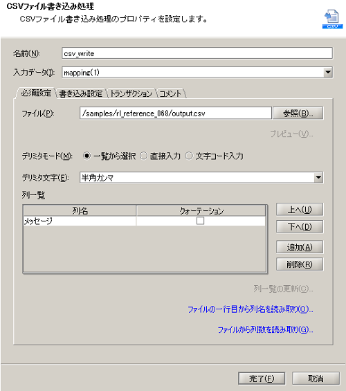 実行結果のイメージについては、サンプルプロジェクトのサンプルデータ「output.csv」を参照してください。