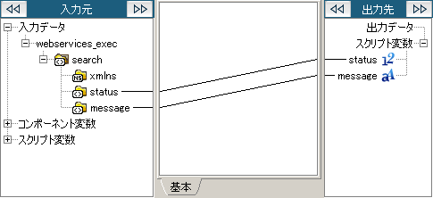 Webサービスの実行結果(戻り値)を取得する場合、Webサービス実行処理の出力データを使用します。