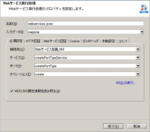 - Webサービス実行処理の設定は、以下のように行います。