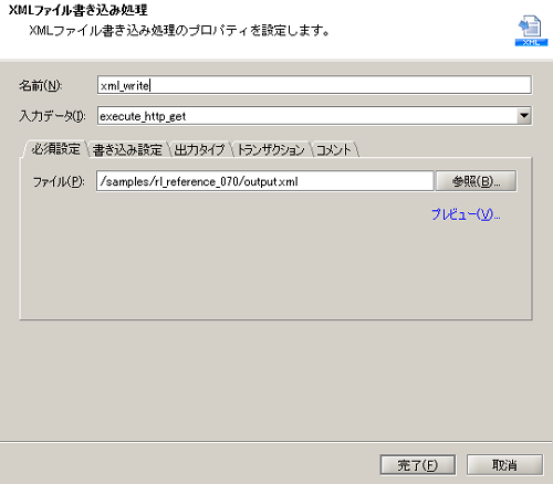 - XMLファイル書き込み処理の設定は、以下のように行います。