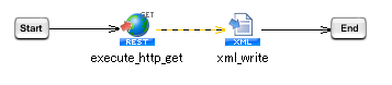 - 「XMLファイル書き込み処理」でWebサービスの実行結果をファイルに書き込みます。
