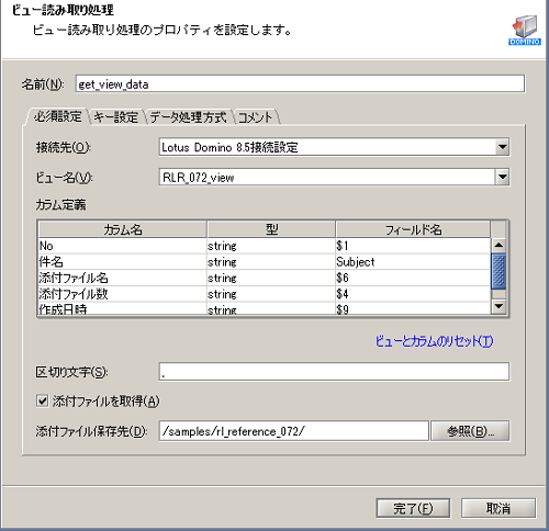キーワード:IBM Domino,ビュー,添付ファイル取得