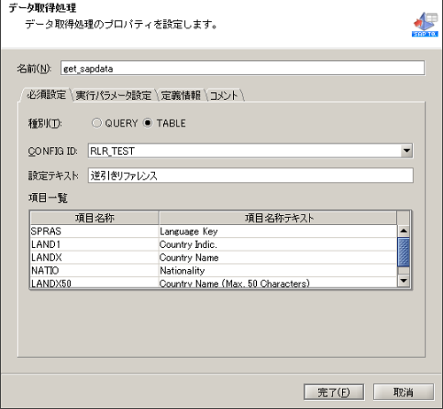 「SAPテーブルクエリアダプタの設定」の詳細については、PDFドキュメントの「DataSpider Servista SAP TableQuery Adapterユーザーズガイド」を参照してください。