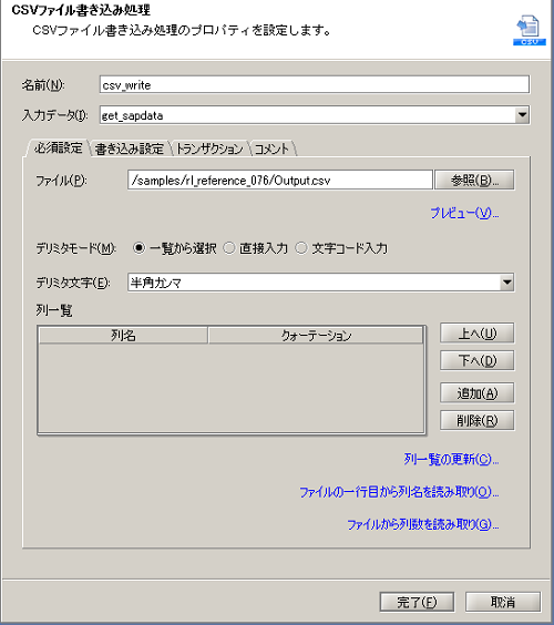 実行結果のイメージについては、サンプルプロジェクトのサンプルデータ「Output.csv」を参照してください。