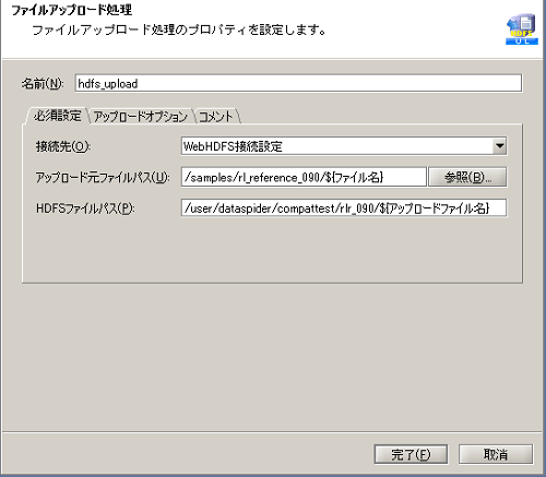 | ファイルアップロード処理 | HDFS(Hadoop Distributed File System)にファイルをアップロードします。 | 「ビッグデータ」-「Hadoop HDFS」-「ファイルアップロード」 |