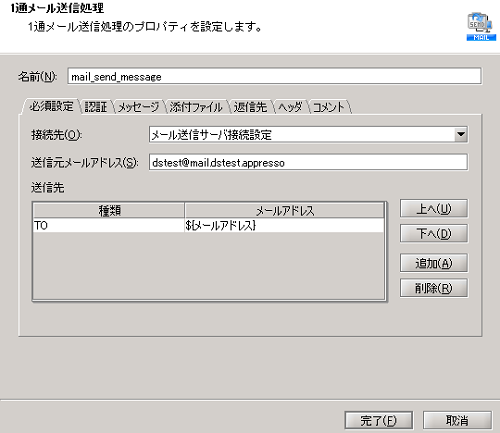 実行結果のイメージについては、以下を参照してください。| 送信先メールアドレス | 宛名 |
