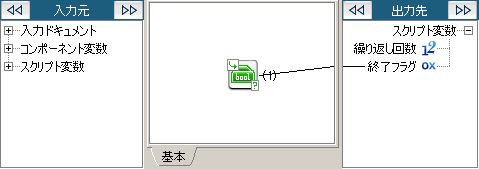 - デザイナのツールパレット「基本」-「フロー」-「繰り返し」から、繰り返し処理をスクリプトキャンバスに配置します。