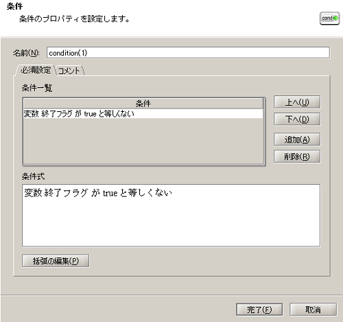 - 「条件分岐処理」でメイン処理の実行状況を判定し、終了している場合、繰り返し処理を抜け出します。