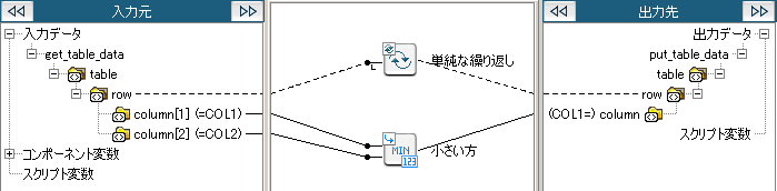 入力データの「column[1]」の数値と「column[2]」の数値を比較し、小さいほうの値を出力します。