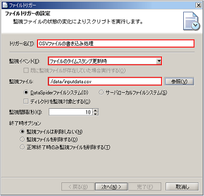 | ファイルトリガー | 監視対象のファイルの新規作成・更新・削除を検知し、発火します。 | |