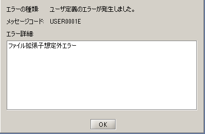 - 拡張子が上記以外の場合、以下のダイアログが表示され、処理が異常終了します。