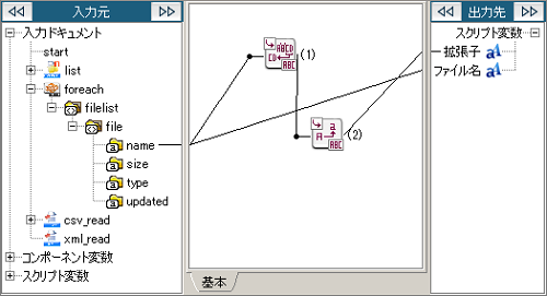 - 変数代入処理のMapperエディタを開き、ファイル名からピリオドより後の文字列を切り出した値をスクリプト変数に代入する処理を作成します。