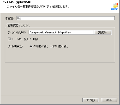 - ファイル名一覧取得処理の設定は、以下のように行います。