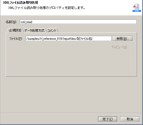 - XMLファイル読み取り処理の設定は、以下のように行います。