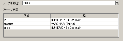 | スキーマ定義/列名 | 必須 | 使用不可 | [テーブル名]で指定したテーブルの列名を表示します。 | |