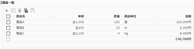 | テーブル型 | テーブル形式でデータを入力するデータタイプです。 |