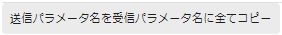 | [送信パラメータ名を受信パラメータ名に全てコピー]アイコン | [送信パラメータ名]プロパティに入力したスクリプト変数名を、[受信パラメータ名]プロパティにすべてコピーします。 | |