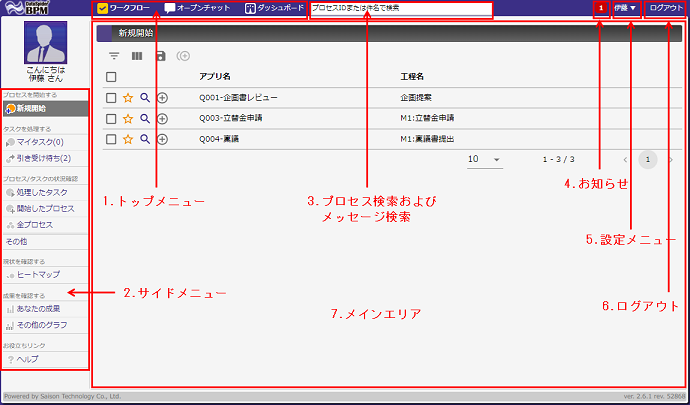 | システム設定 | ユーザ、組織および権限などのシステム管理機能を操作することができます。 |