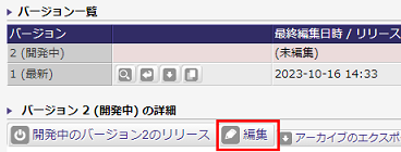 アプリ設定詳細画面を開き、[編集]ボタンを押下します。 |