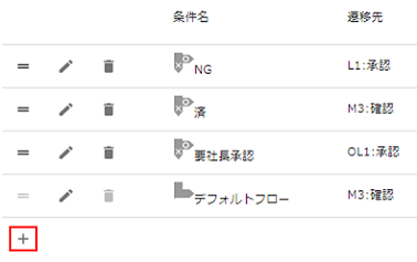新たに追加した条件の[編集]アイコンを押下し、条件名、遷移先、条件式を以下の様に設定します。