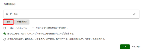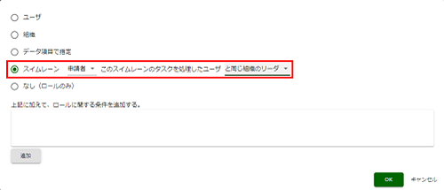 (説明) 他のスイムレーンのタスク処理者と関連したユーザに割り当てたい場合に、スイムレーン指定による割り当てを使います。 |