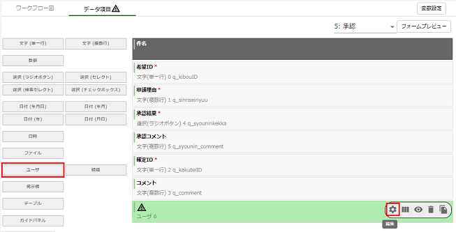 追加したデータ項目の設定を以下の内容に変更します。