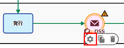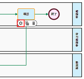メニュータブの[ワークフロー図]タブを押下して、「確認」タスクをクリックし、表示されたメニューの[歯車]アイコンをクリックします。 |