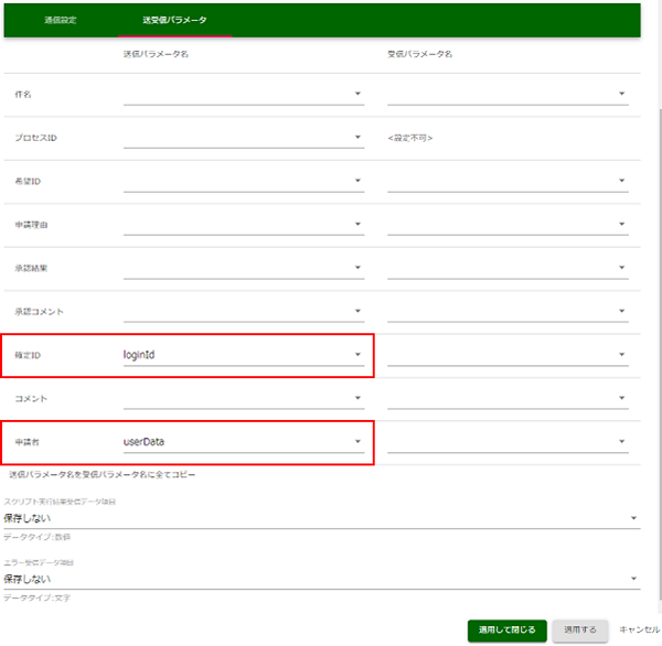 次に、[送受信パラメータ]タブの設定を行います。 [送受信パラメータ]タブ