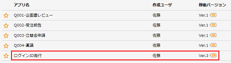 [アプリ一覧]にて、「ログインID発行」アプリが稼働していることを確認します。 (説明)