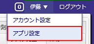 画面右上のメニューの[アプリ設定]メニューを押下します。 | |||||||||