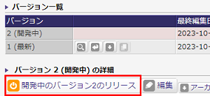 [開発中のバージョンのリリース]ボタンを押下して、新しいアプリを稼働します。 (説明)