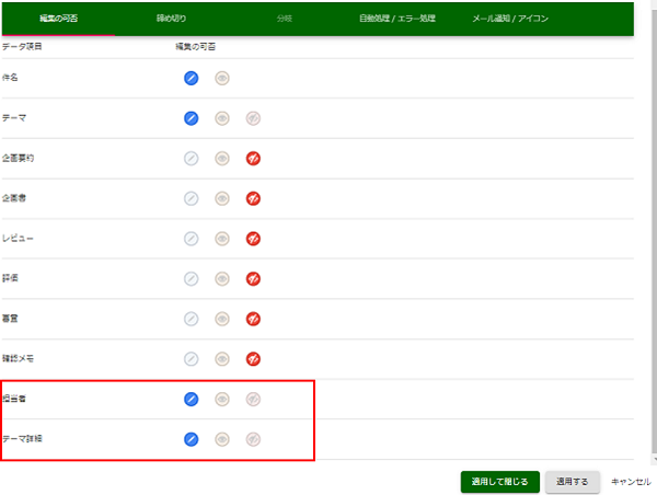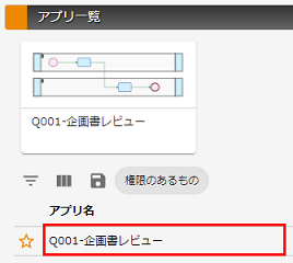 「Q001-企画書レビュー」のレコードを選択して、アプリ設定詳細画面へ移動し、その画面で[編集]ボタンを押下します。 |