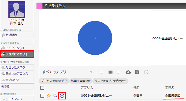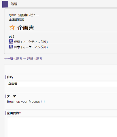 山本さんは、企画書作成の依頼がマーケティング部のメンバ宛てに来ていることに気づきます。| イメージ図 | DataSpider BPMの操作 | |