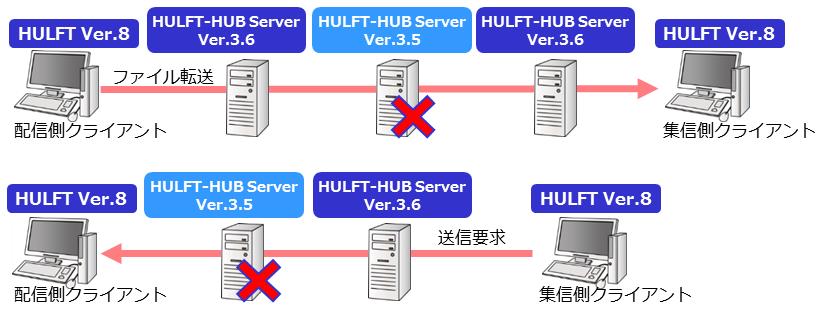 HULFT-HUB Server Ver.3.6以降で中継または蓄積し、転送経路上にHULFT-HUB Server Ver.3.6未満が存在する場合、以下の表示名のいずれかが50バイトを超えていると、ファイル転送や要求発行が適切に動作しない場合があります。