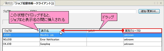 並び替えたい項目の見出しを移動先までドラッグしてください。